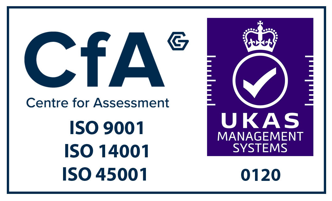 All certifications are independently approved and verified by the Centre for Assessment (CfA), a United Kingdom Accreditation Service (UKAS) certification body, confirming compliance with the International Organisation for Standardisation (ISO).